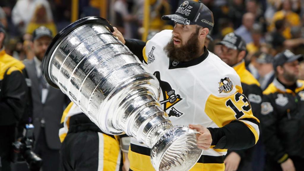 This time, all he did was punch and spear the head of Pittsburgh goalie Tristan Jarry. Both infractions after the whistle. Both while the referee was staring at him. Video here.